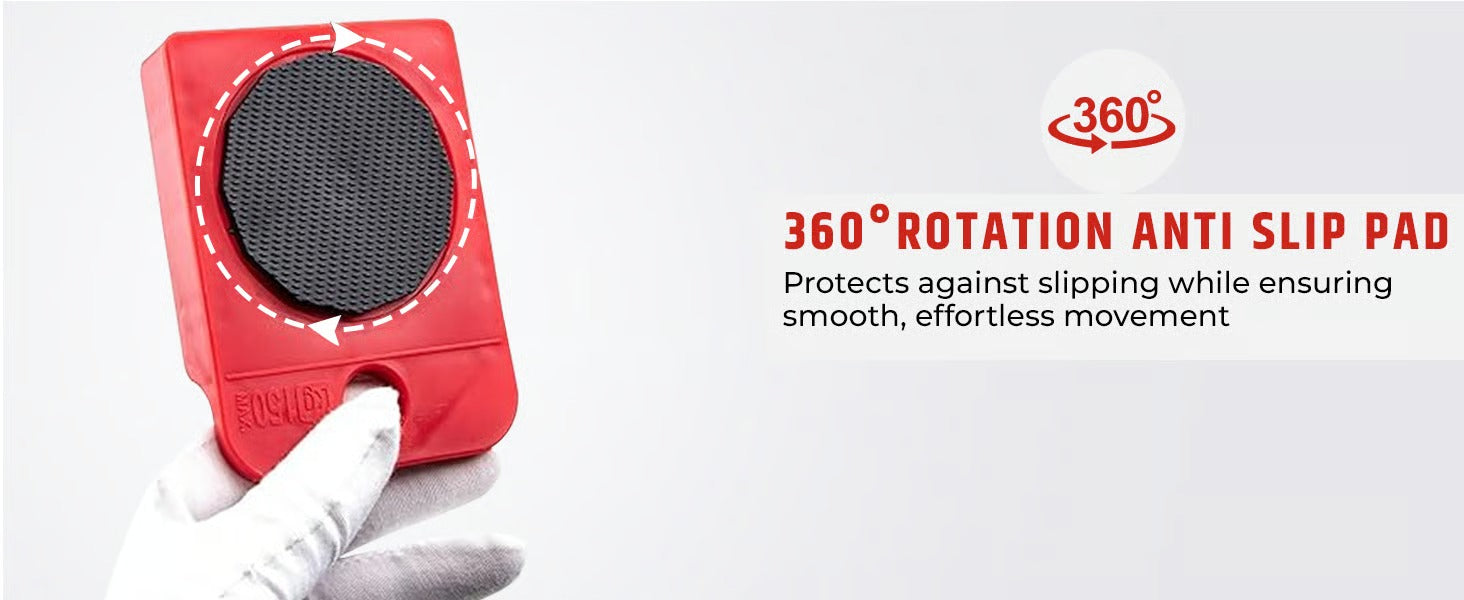 360 DEGREE ROTATABLE SLIDERS: This furniture lifter and moving pads allow you to move furniture/appliance into place across any surface