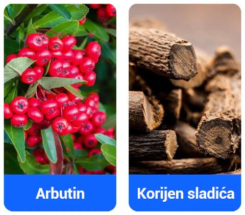 Arbutin: Evens out skin tone, lightens dark areas and helps fight blemishes, scars and scars due to its anti-inflammatory properties.